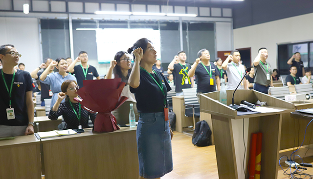 在此次黨史學習會上,西迪黨支部書記吳小琴同志帶領(lǐng)全體黨員一起重溫入黨誓詞,黨員同志高舉右拳,面向黨旗莊嚴宣誓,神圣而莊嚴的時刻,讓我們作為中國共產(chǎn)黨的一分子由衷的感覺到驕傲。